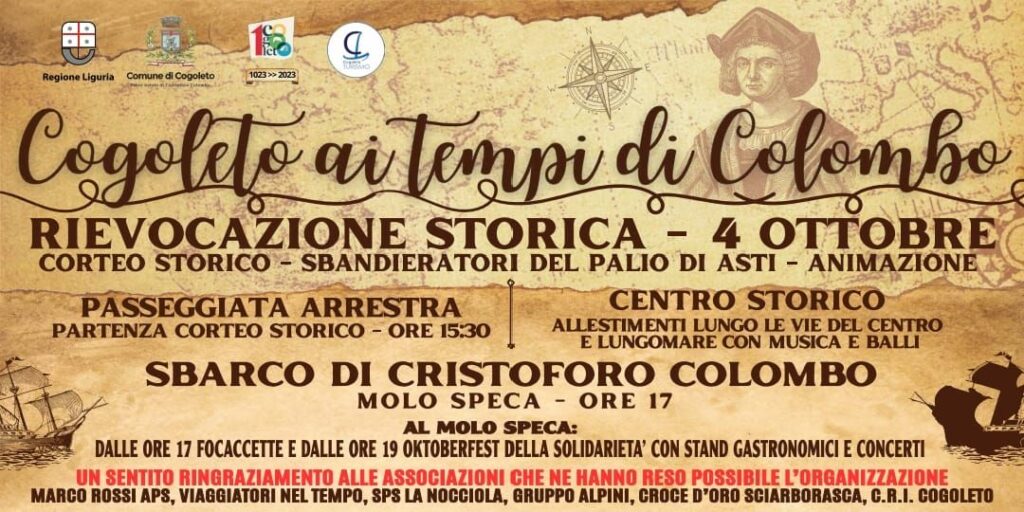 Ti aspettiamo anche quest’anno insieme a Cogoleto Turismo e alle associazioni del territorio per celebrare l’anniversario della grande scoperta del suo concittadino, Cristoforo Colombo: Cogoleto ai tempi di Colombo è la rievocazione storica che ti riporta alla fine del XV secolo e all’epoca in cui è stata scoperta l’America.