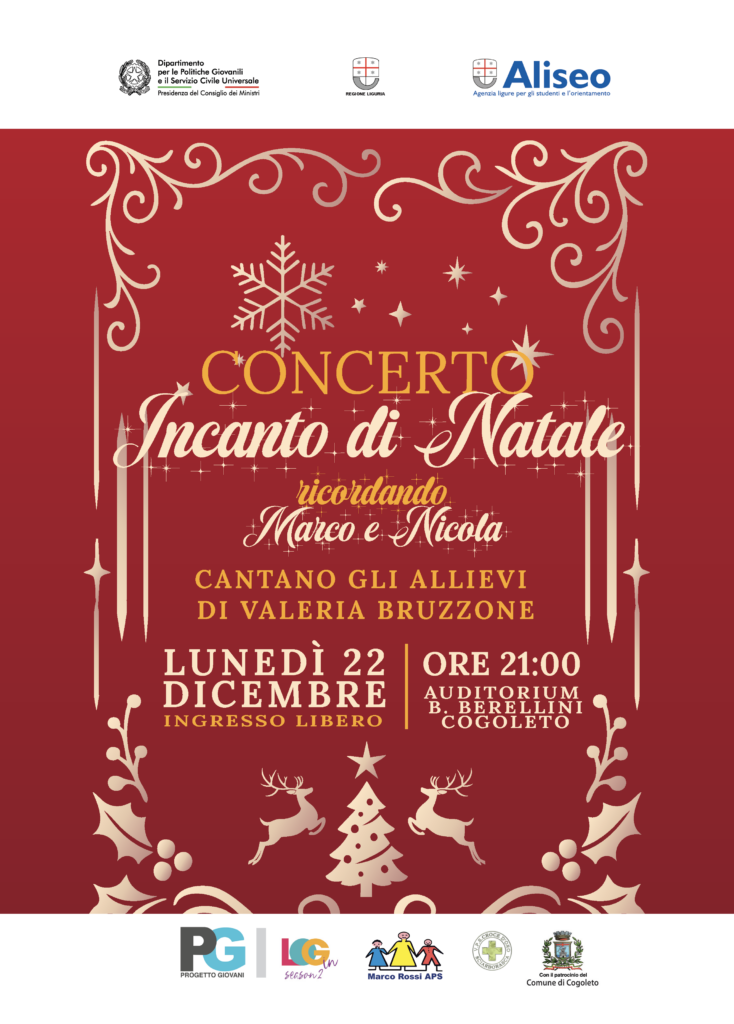 Come ogni anno, ti invitiamo al nostro concerto natalizio, quest’anno a tema “Incanto di Natale”, ricordando Marco e Nicola Rossi.